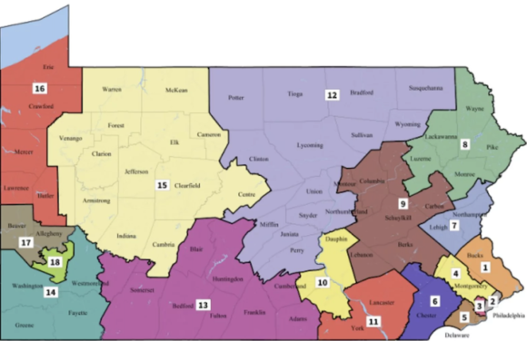 There are no rules in PA or federal law regarding the drawing of congressional districts. According to legal precedent, districts must be as close in population as possible, and districts cannot be drawn to dilute racial vote share. In the 2019 case of Rucho v Common Cause, the US Supreme Court, by a 5-4 majority, ruled that questions of partisan gerrymandering cannot be determined in federal courts, leaving it to state courts to determine when “political” gerrymandering has gone too far.