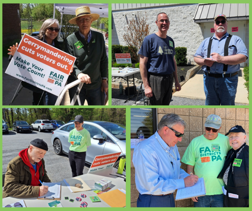 On Primary Election Day, Fair Districts PA volunteers from across the state again donned their FDPA apparel and invited voters to sign a petition in support of an Independent Redistricting Commission (IRC) to draw our congressional and state legislative maps. Some volunteers put in a shift near home before or after work. Others gave an entire day to volunteer in a region where we need to grow. In all, over 175 volunteers and captains invested time to reach voters at 41 polling places from Erie to Philadelphia and 22 other counties in between. At firehouses, rec centers, churches, and township buildings, volunteers answered questions, and explained why redistricting happens. Not all voters are familiar with the word gerrymandering, but all understood quickly that it’s a conflict of interest to allow legislative leaders to draw their own district lines.